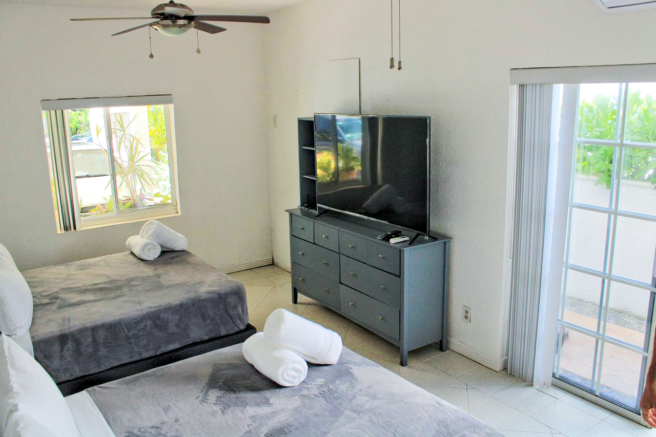 3 BR Mimi Villa – Bedroom 2 – 2 Queen Beds + Patio 3 BR Mimi Villa - Bedroom 2 - 2 Queen Beds + Patio
